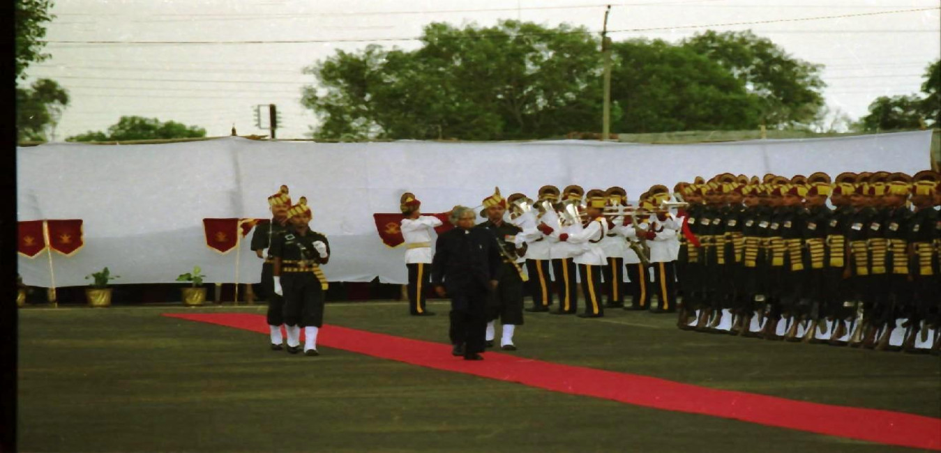 The President of India, Dr A P J Abdul Kalam at the Ceremonial Arrival at Bhopal Airport in Madhya Pradesh on Sep 05, 2002