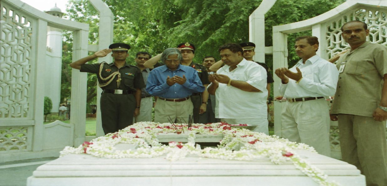 The President of India, Dr A P J Abdul Kalam paying homage to the Prime Minister of India, Late Shri Jawahar Lal Nehru at Shanti Van in New Delhi on July 26, 2002