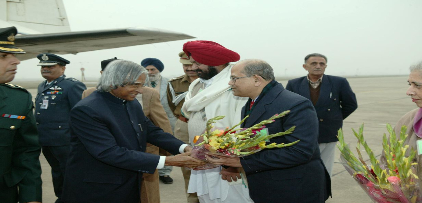 The President of India, Dr A P J Abdul Kalam arriving at Chandigarh Airport in Punjab on Jan 05, 2004