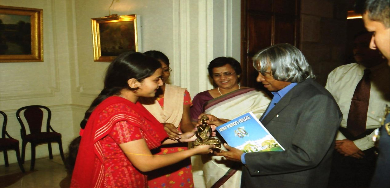 The Student from Patna Women's College Patna calling on the President of India, Dr A P J Abdul Kalam at the Yellow Drawing Room of Rashtrapati Bhavan in New Delhi on Nov 18, 2003