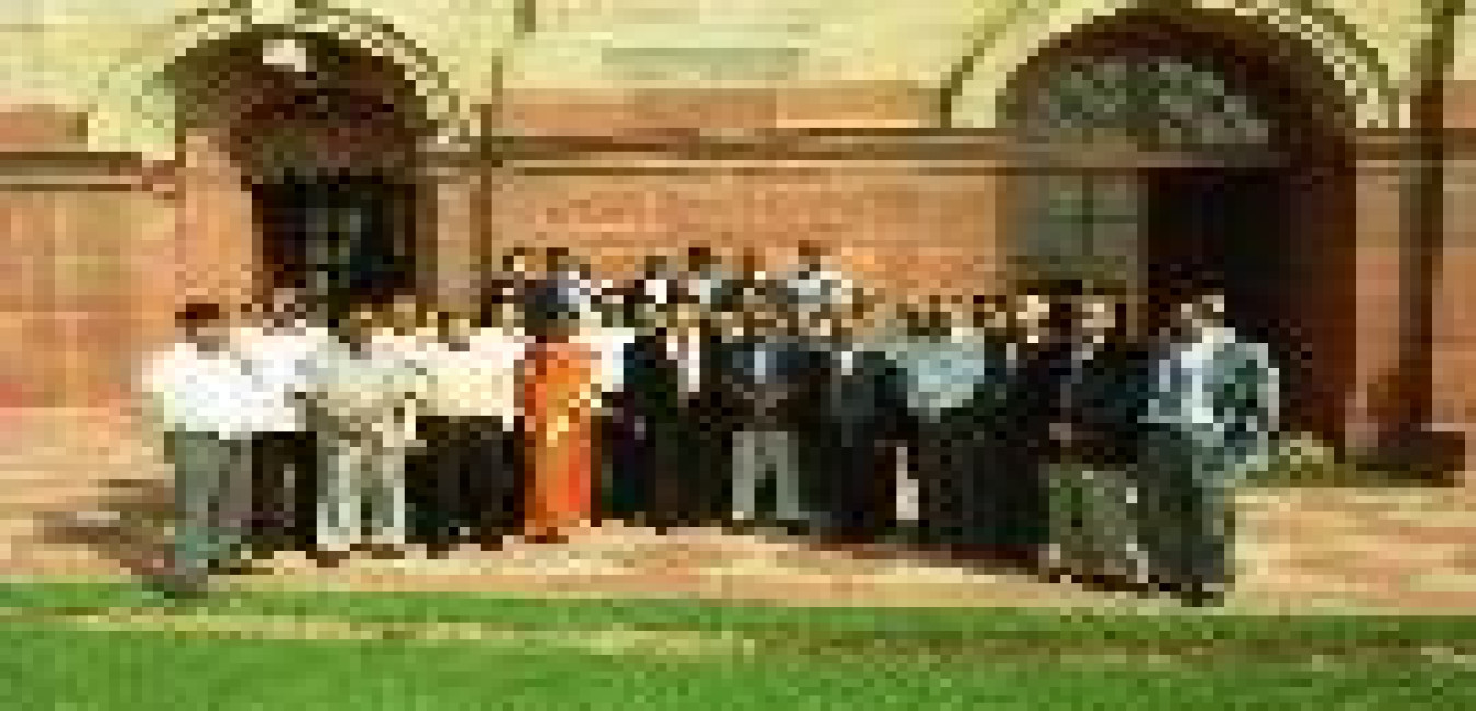 The President of India, Dr A P J Abdul Kalam with a Team of ISRO DOS Scientists Officials at the Intellectual Room of Rashtrapati Bhavan in New Delhi on Nov 07, 2003