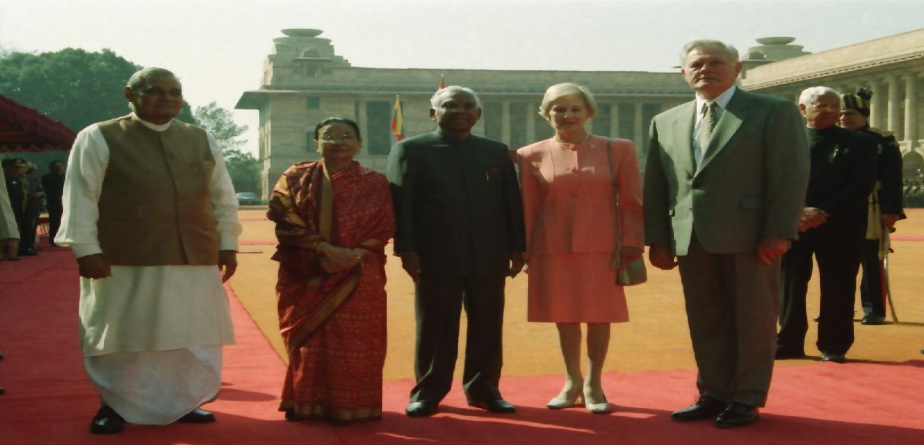 The President of India, Shri K R Narayanan at the Banquet Hosted in Honour of the President of the Republic of Lithuania, HE Mr Valdas Adamkus and his wife Alma Adamkiene at the Banquet Hall of Rashtrapati Bhavan in New Delhi on Feb 20, 2001