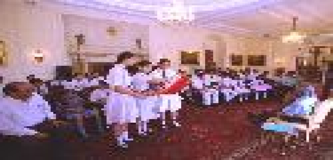 The Students from JP Academy Meerut calling on the President of India, Dr A P J Abdul Kalam at the Yellow Drawing Room of Rashtrapati Bhavan in New Delhi on July 11, 2003