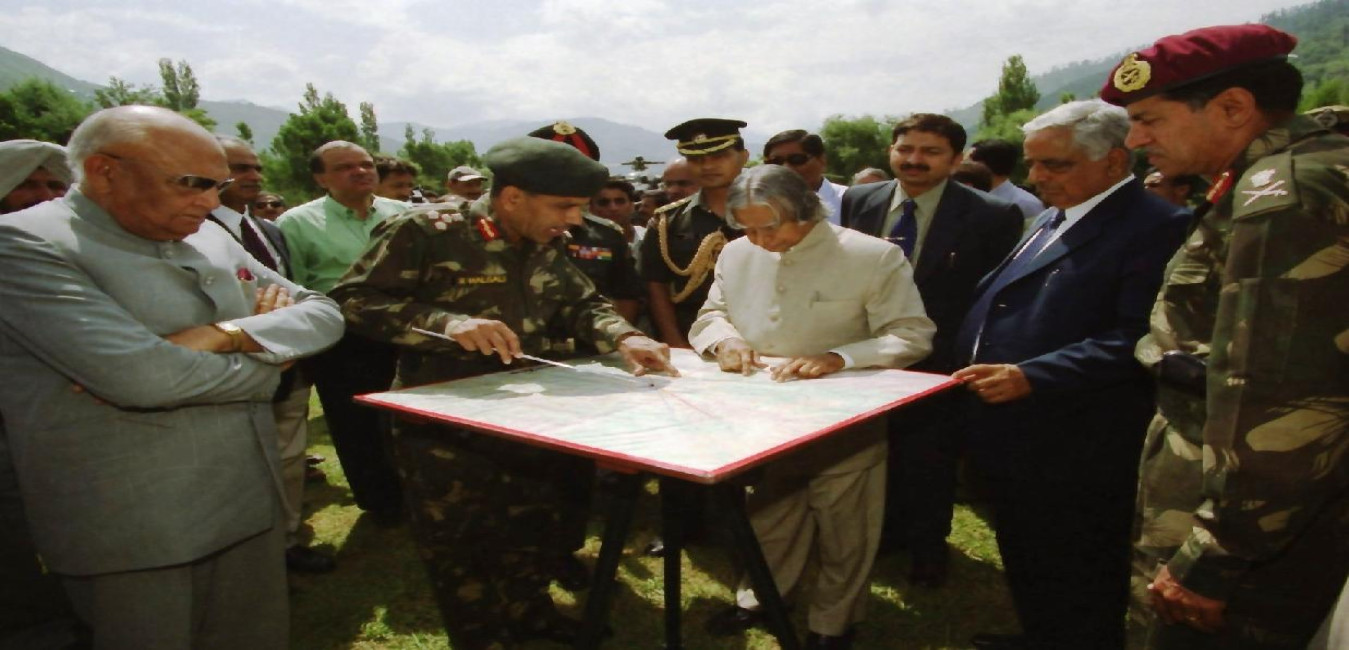 The President of India, Dr A P J Abdul Kalam visiting the Brigade HQ and meeting with the TPS at URI in Jammu and Kashmir on June 28, 2003