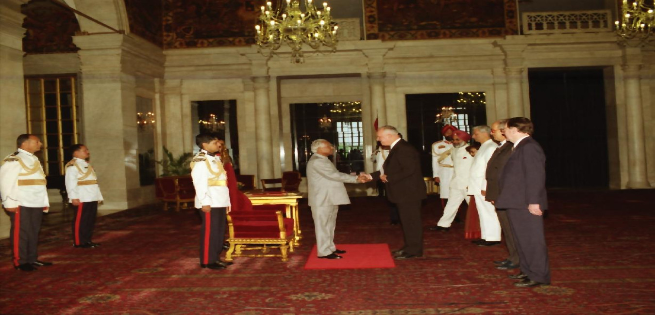 The Ambassador-Designate of the Israel to India, HE Mr David Aphek presenting his credentials to the President of India, Shri K R Narayanan at the Ashok Hall of Rashtrapati Bhavan in New Delhi on Sep 19, 2000
