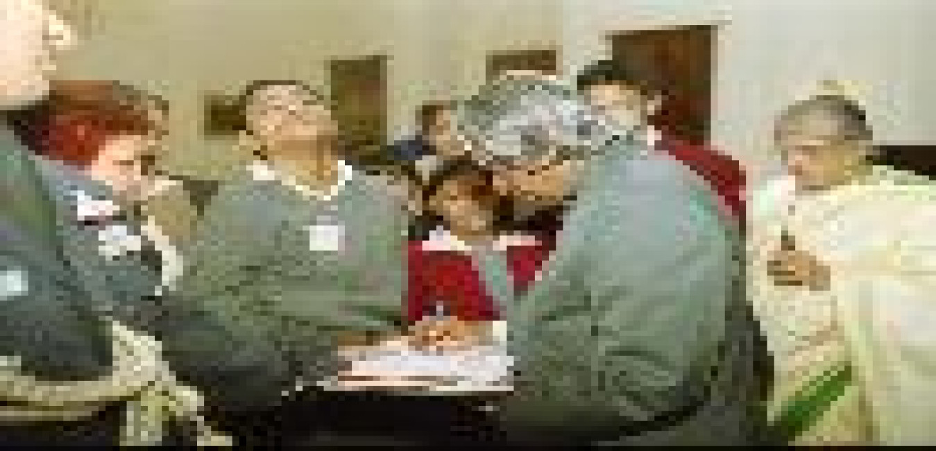 The President of India, Dr A P J Abdul Kalam interacting with Dr Efremov Gerbert, Mr S Alexander, Dr A S Pillai and others at Rashtrapati Bhavan in New Delhi on Dec 03, 2002