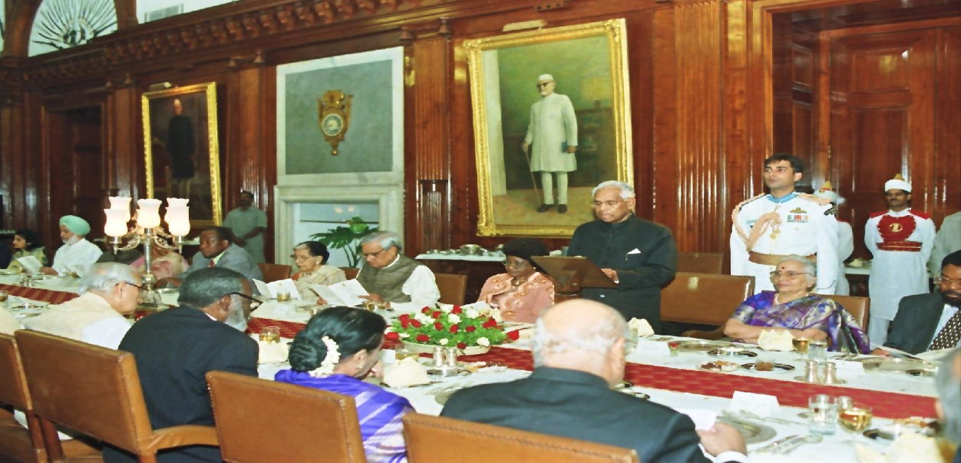 The President of India, Shri K R Narayanan at the Banquet Hosted in Honour of the President of the Republic of Namibia, His Excellency Dr Sam Nujoma and his wife Mrs Kovambo Nujoma at the Banquet Hall of Rashtrapati Bhavan in New Delhi on July 21, 1999