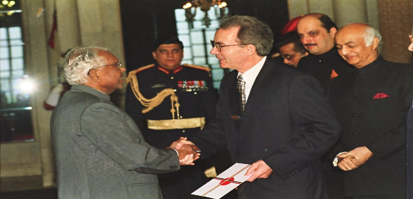 The Ambassador-Designate of Republic of Croatia,HE Dr Zoran Andric presenting his credentials to the President of India, Shri K R Narayanan at the Ashok Hall of Rashtrapati Bhavan in New Delhi on Nov 21, 1998