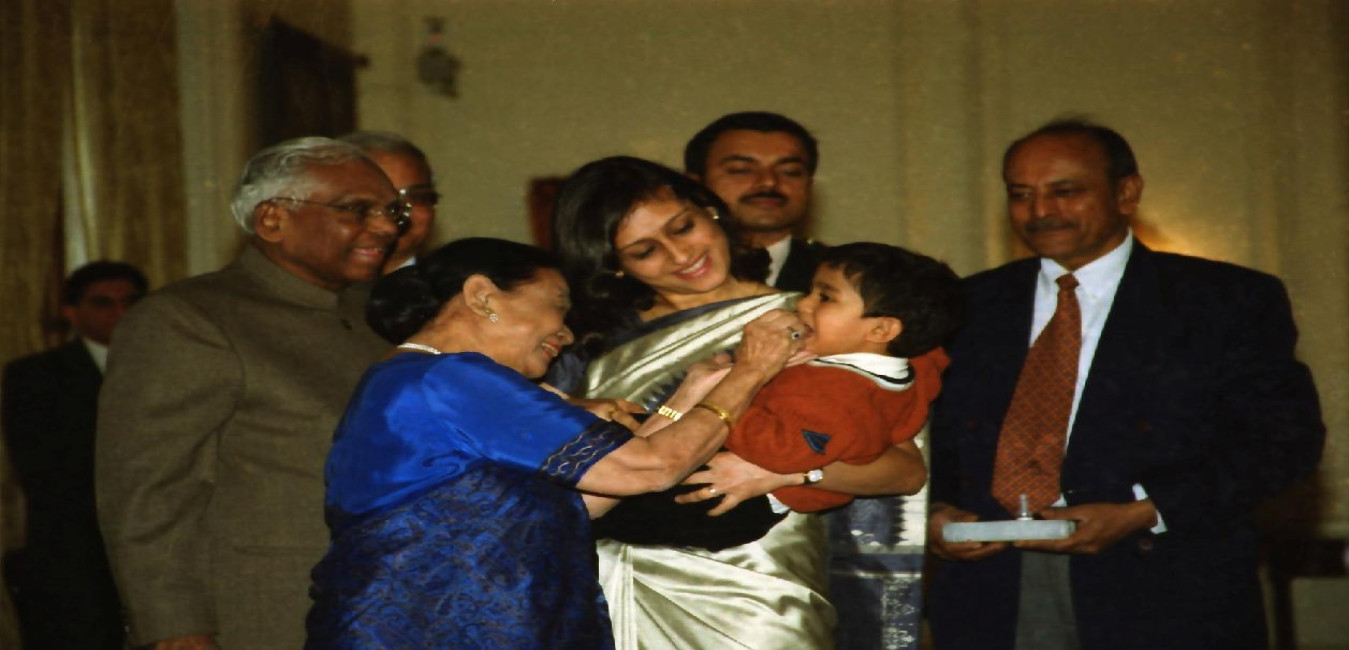 The President of India, Shri K R Narayanan inaugurating the National Pulse Polio Programme by Administering Polio Drops to the Children at the Yellow Drawing of Rashtrapati Bhavan in New Delhi on Dec 01, 2001