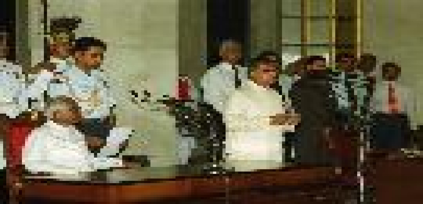 The President of India, Shri K R Narayanan at the Swearing-in-Ceremony of the Council of Ministers at the Ashok Hall of Rashtrapati Bhavan in New Delhi on Oct 15, 2001