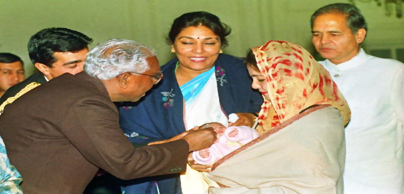 The President of India, Shri K R Narayanan inaugurating the Pulse Polio Campaign by administering the Polio Drop to Children at the Yellow Drawing Room of Rashtrapati Bhavan in New Delhi on Dec 06, 1997