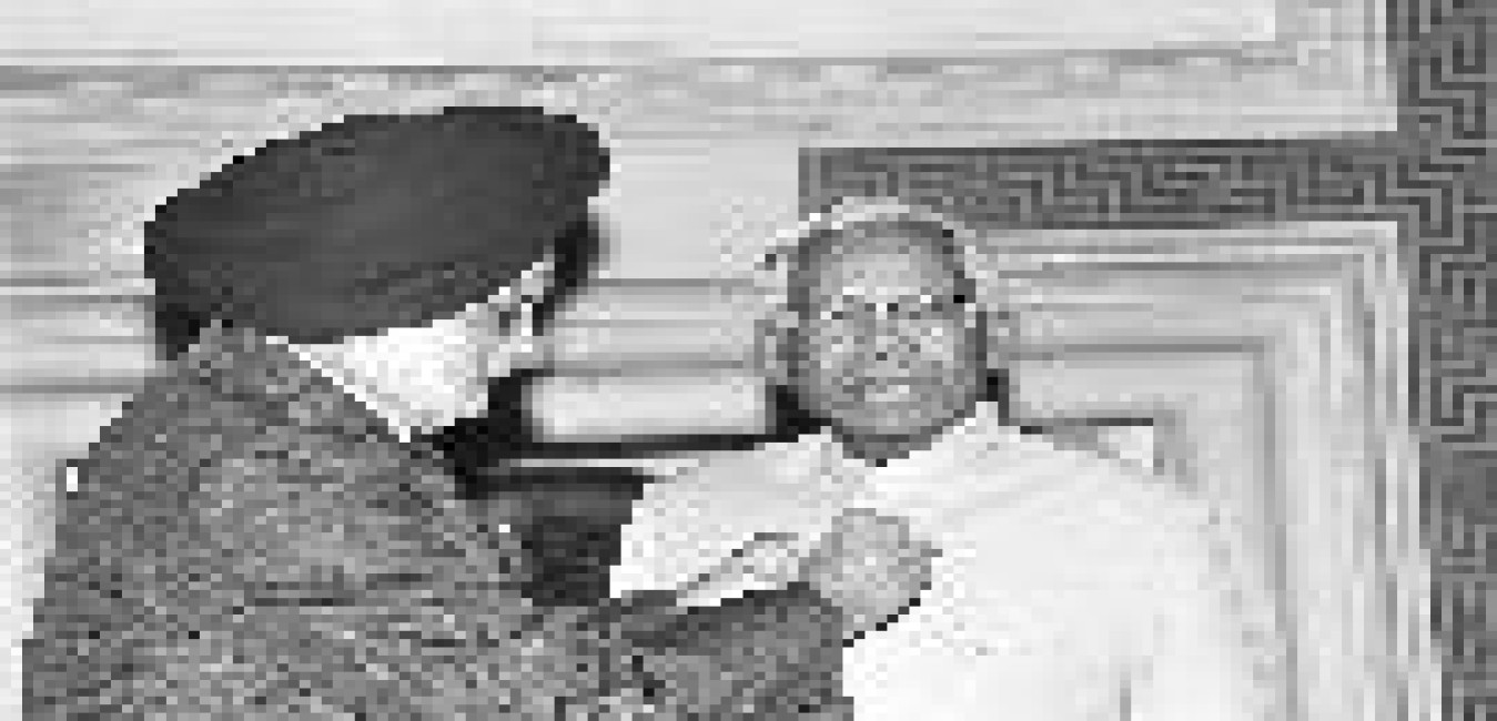 The President of India, Shri K R Narayanan at the Swearing-in-Ceremony of Pro-Tem Speaker of Lok Sabha, Shri Indrajit Gupta at the Yellow Drawing Room of Rashtrapati Bhavan in New Delhi on Oct 20, 1999