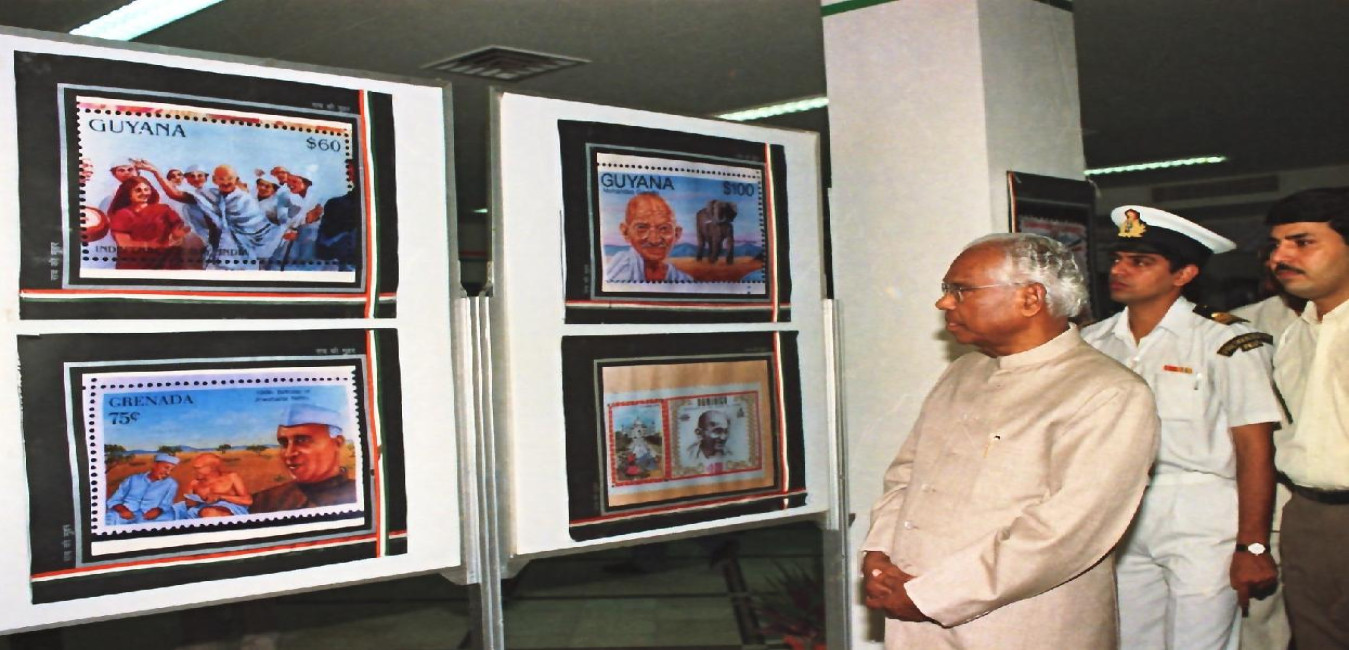 The President of India, Shri K R Narayanan visiting the Exhibition of Poster-Size Stamps on Mahatma Gandhi Released in 64 Countries at Secular House, Opp JUNU East Gate, Arun Asaf Ali Marg in New Delhi on Sep 30, 1999