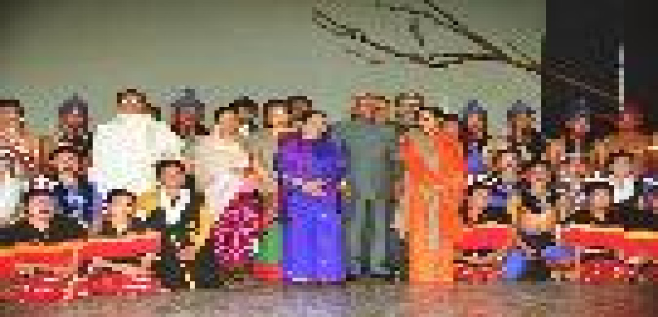 The President of India, Shri K R Narayanan with the Artists of Dance Drama "Wainu Pareng" by JN Dance Academy at Imphal in Manipur on Feb 13, 1999