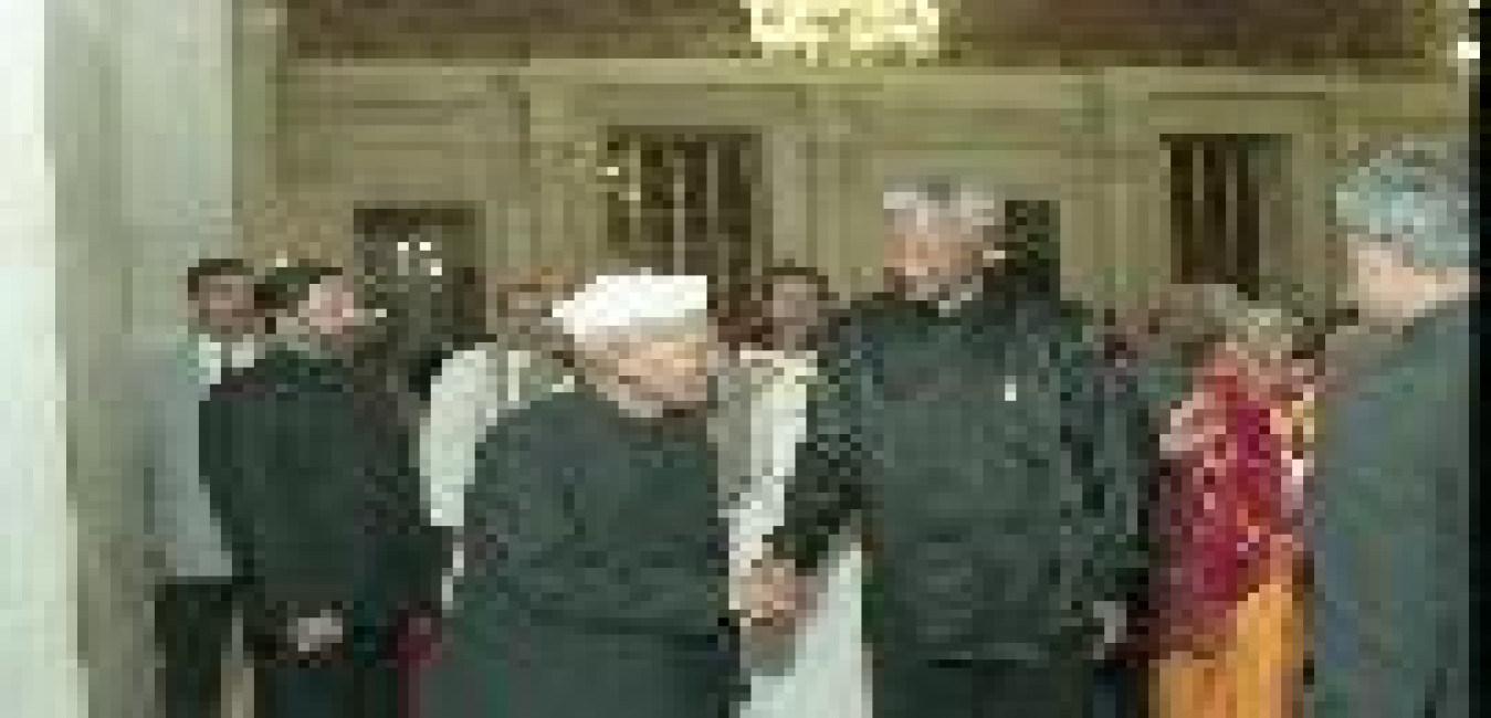 The President of India, Dr. Shankar Dayal Sharma meeting with Shri J.N. Kashyap with family at Rashtrapati Bhavan in New Delhi on March 26, 1997.