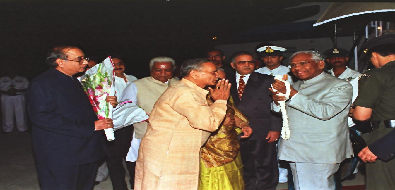 The President of India, Shri K R Narayanan being welcomed by the Governor of Gujarat, Shri Anshuman Singh and the Chief Minister of Gujarat, Shri Keshubhai Patel at Ahmedabad Airport in Gujarat on Oct 28, 1998