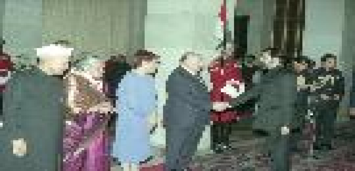The President of India, Dr. Shankar Dayal Sharma meeting with a group of children at Mughal Garden in New Delhi on February 12, 1997.