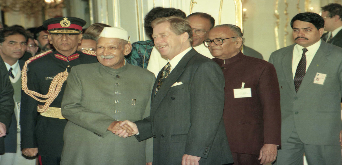 The President of India, Dr. Shankar Dayal Sharma meeting with the President of Czech Republic, Mr. Vaclav Havel, at Prague Castle in Czech on October 11, 1996.
