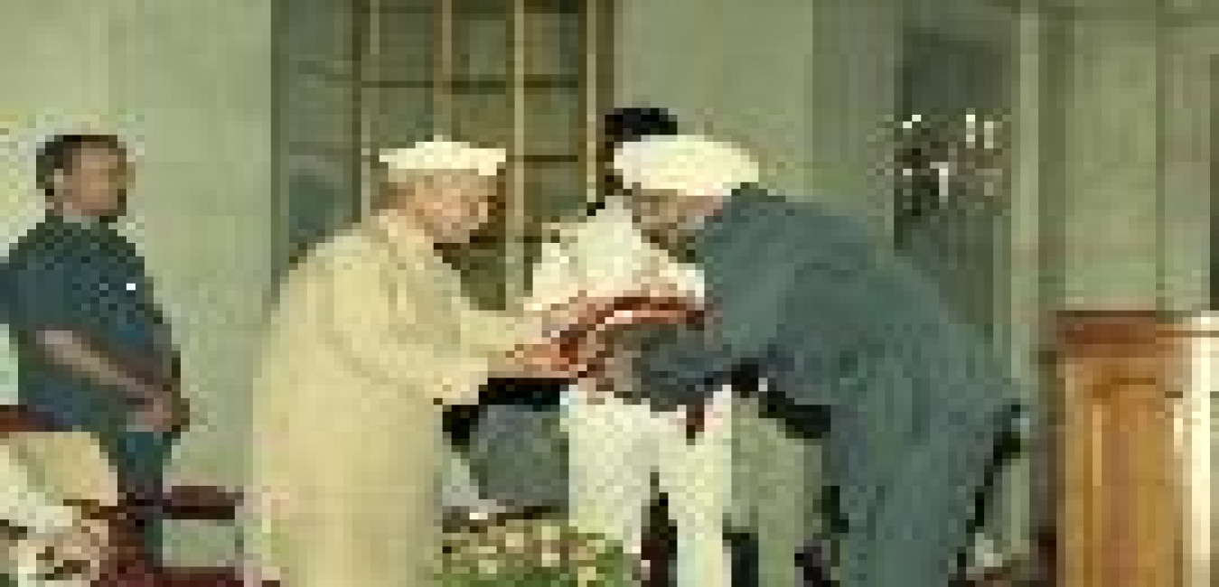 The President of India, Dr. Shankar Dayal Sharma receiving a copy of the book "Salli Ala Muhammad" published by Darrul Quran Publishers Pvt. Ltd. at Rashtrapati Bhavan in New Delhi on September 23, 1996.