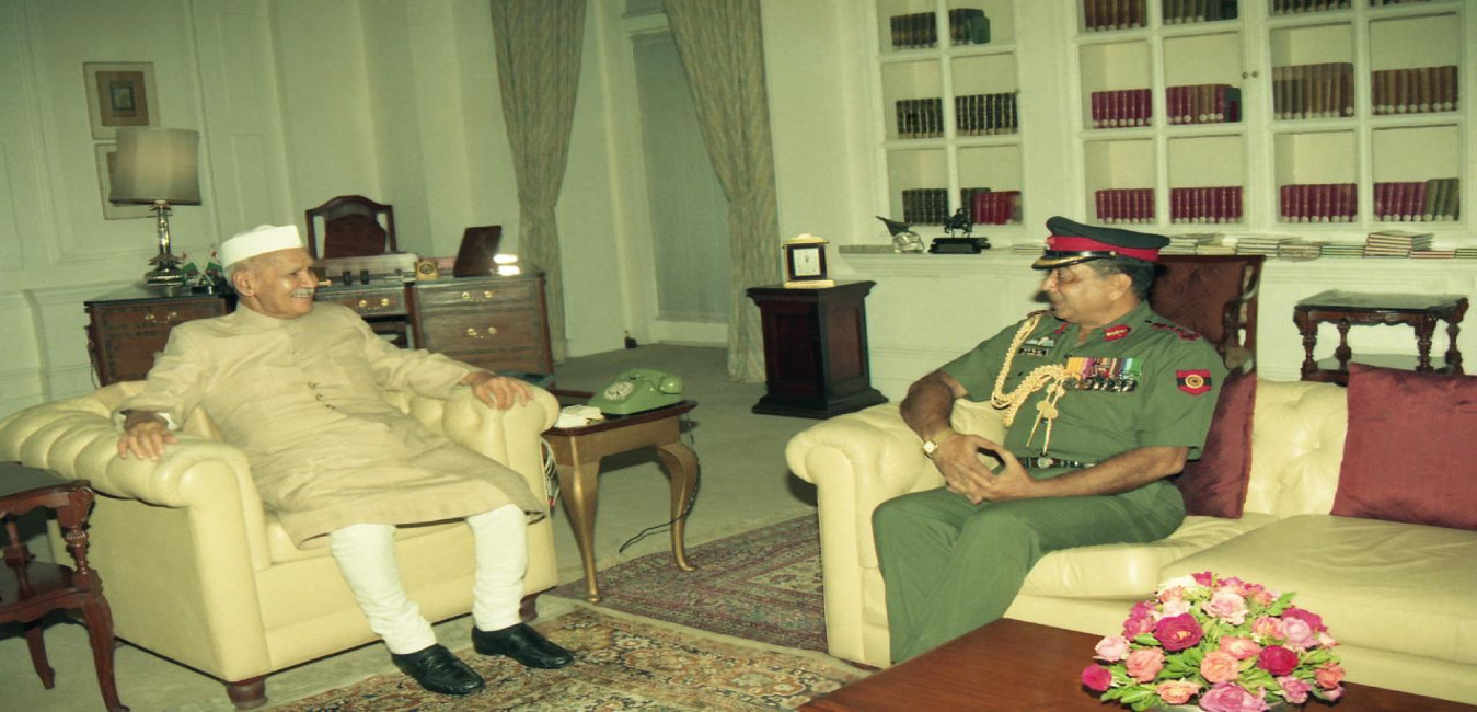 The President of India, Dr. Shankar Dayal Sharma receiving a copy of the book from Dr. Wazir at Rashtrapati Bhavan in New Delhi on August 25, 1995.