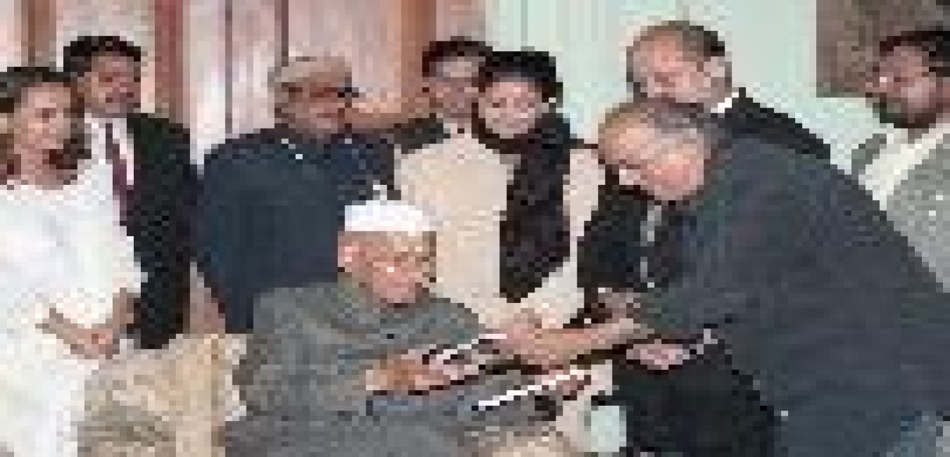 The President of India, Dr. Shankar Dayal Sharma meeting with Mr. Shere Khawaza, at Rashtrapati Bhavan in New Delhi on February 06, 1997.