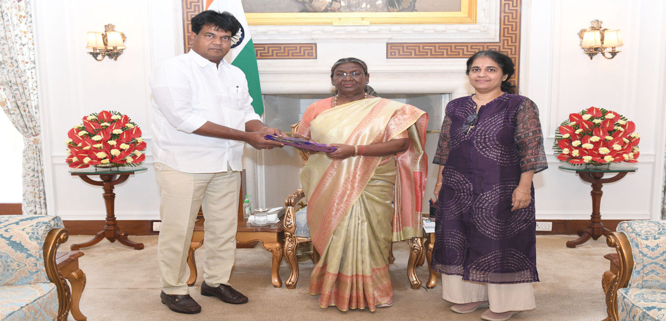 Shri Muppavarapu Harshavardhan and Smt. Radha Muppavarapu meeting with the President of India Smt Droupadi Murmu at Rashtrapati Bhavan on April 22, 2024.