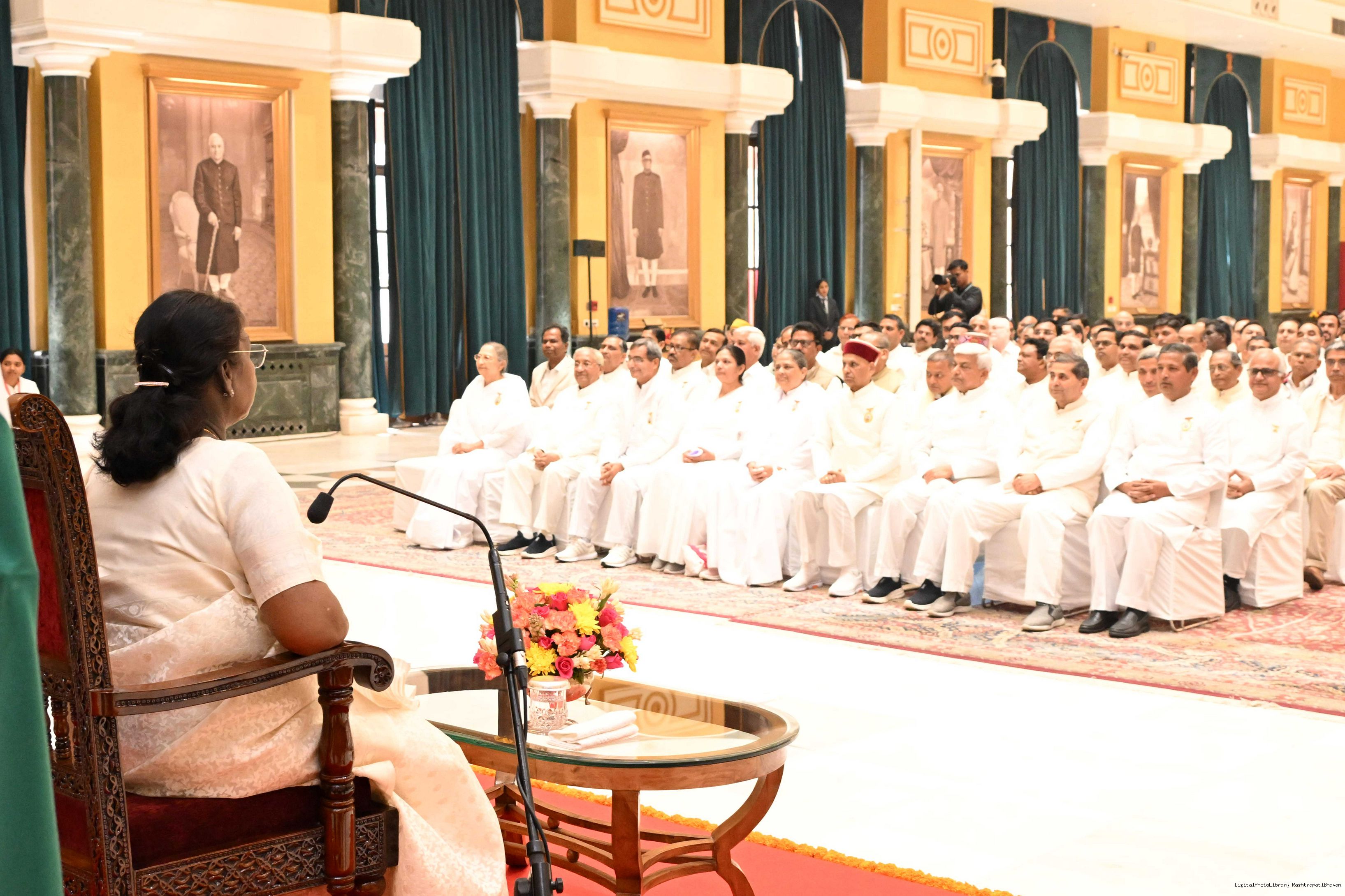 The President of India, Smt. Droupadi Murmu interacted and posing a group photograph with groups of Brahmkumaris at Rashtrapati Bhavan on December 2, 2025.
