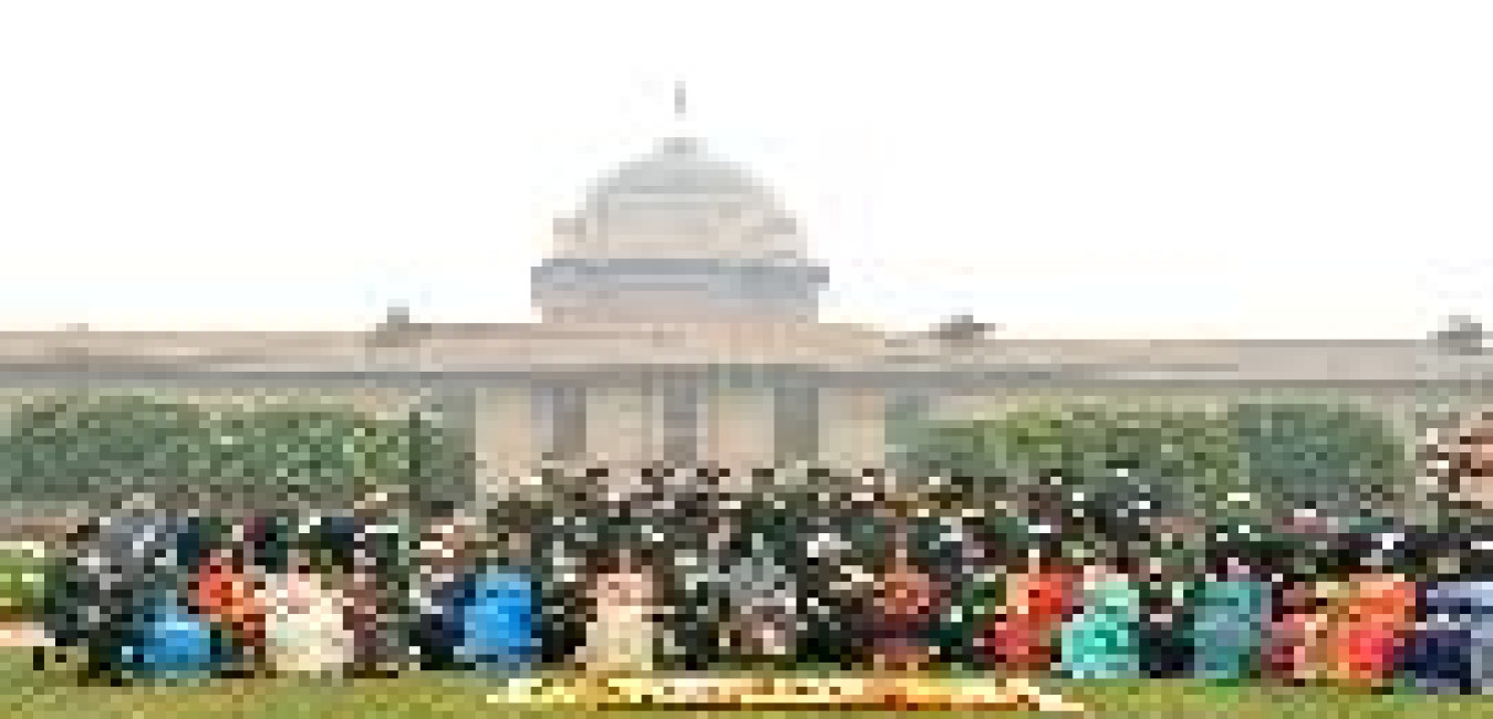 The President of India, Shri Ram Nath Kovind with the Tribal Guests, Tableaux Artistes, Tractor Drivers, NSS Volunteers, NCC Cadets & Officials (participants of the Republic Day Parade-2020), at Rashtrapati Bhavan on January 27, 2020.