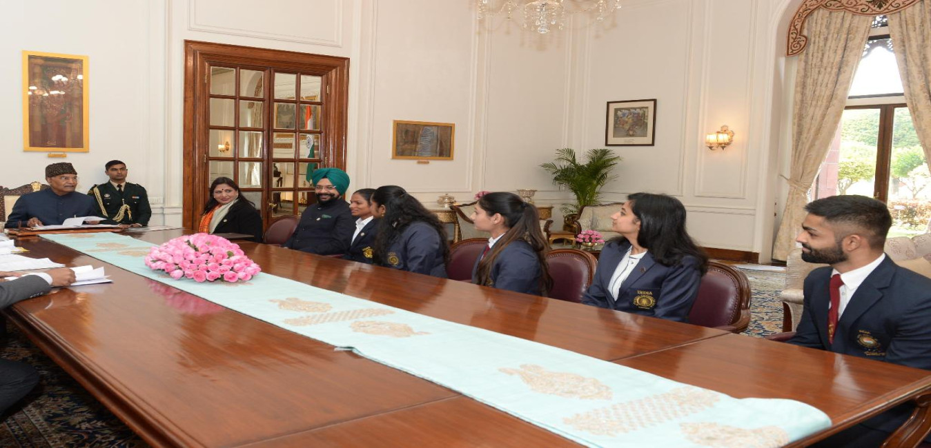 The President of India, Shri Ram Nath Kovind interacting with persons who have excelled in their respective field, at Rashtrapati Bhavan on January 03, 2020.