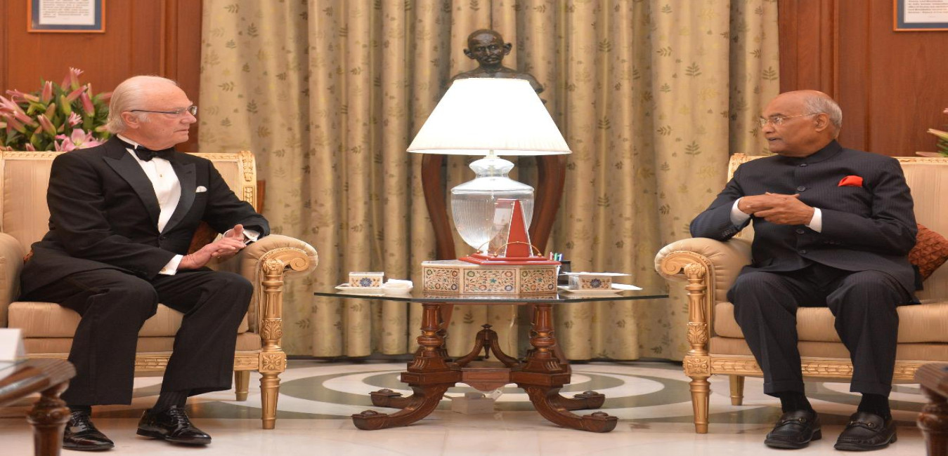 Their Majesties King Carl XVI Gustaf and Queen Silvia of Sweden calling on the President of India, Shri Ram Nath Kovind, at Rashtrapati Bhavan on December 02, 2019.