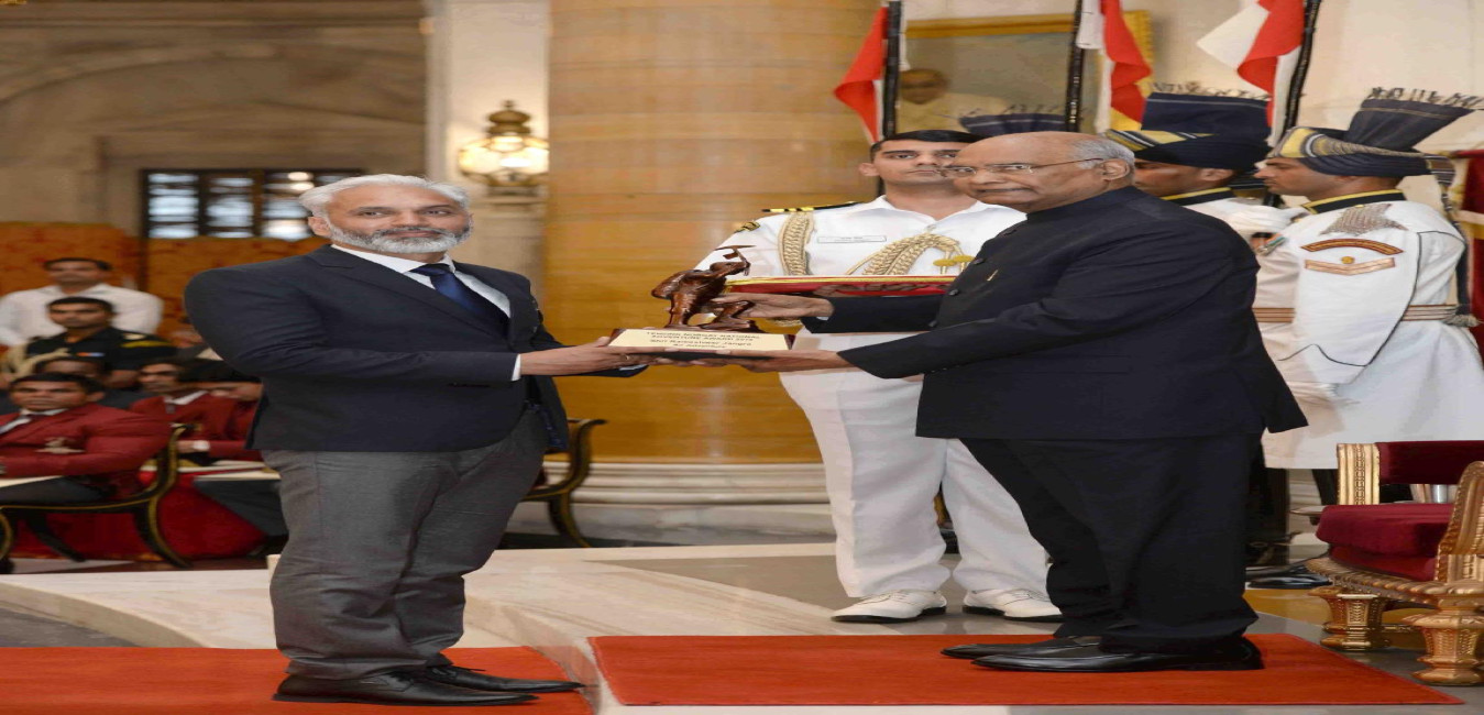 The President of India, Shri Ram Nath Kovind presenting the Rashtriya Khel Protsahan Puruskars 2019 to GoSports Foundation, Gagan Narang Sports Promotion Foundation and Rayalaseema Development Trust, at the National Sports & Adventure Awards function, at Rashtrapati Bhavan on August 29, 2019.