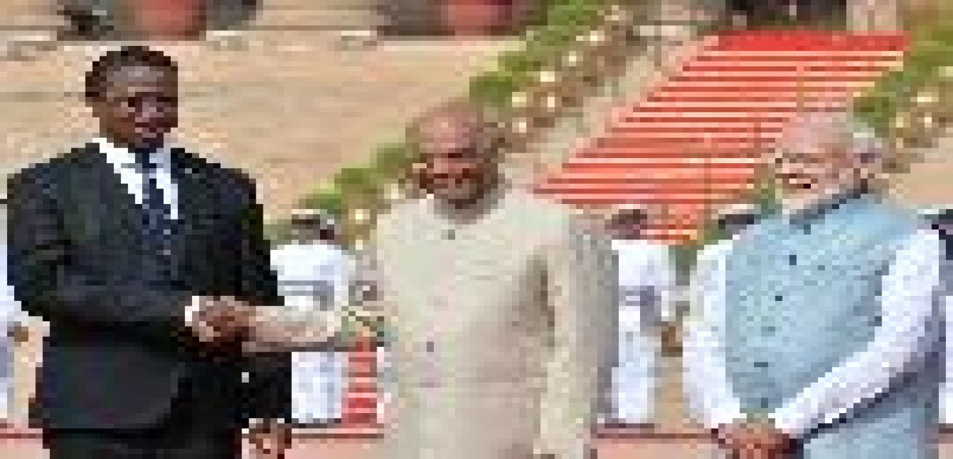 The President of India, Shri Ram Nath Kovind accords a Ceremonial Welcome to the President of the Republic of Zambia, H.E. Mr. Edgar Chagwa Lungu, at Rashtrapati Bhavan on August 21, 2019.