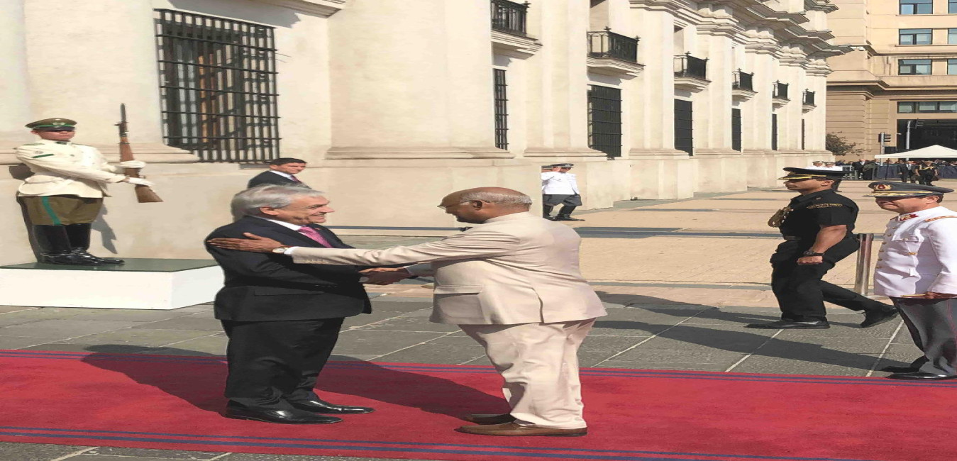 The President of India, Shri Ram Nath Kovind accorded a Ceremonial Welcome by the President of Chile, H.E. Mr. Sebastian Pinera, at 'La Moneda' Presidential Palace, Santiago, in the Republic of Chile on April 01, 2019.