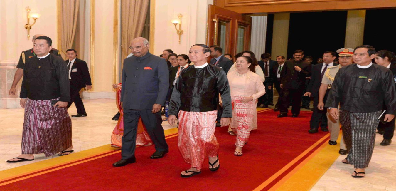 The President of India, Shri Ram Nath Kovind with the President of Myanmar, H.E. Mr. U. Win Myint, at Presidential Palace, Nay Pyi Taw, in Myanmar on December 11, 2018.
