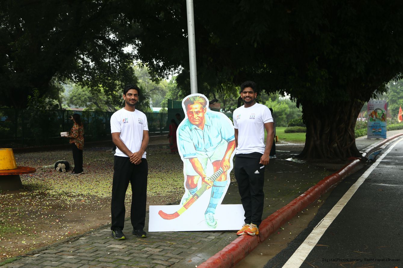 The President of India, Smt Droupadi Murmu interacted with sportspersons who visited Amrit Udyan on National Sports Day at Rashtrapati Bhavan on August 29, 2025.