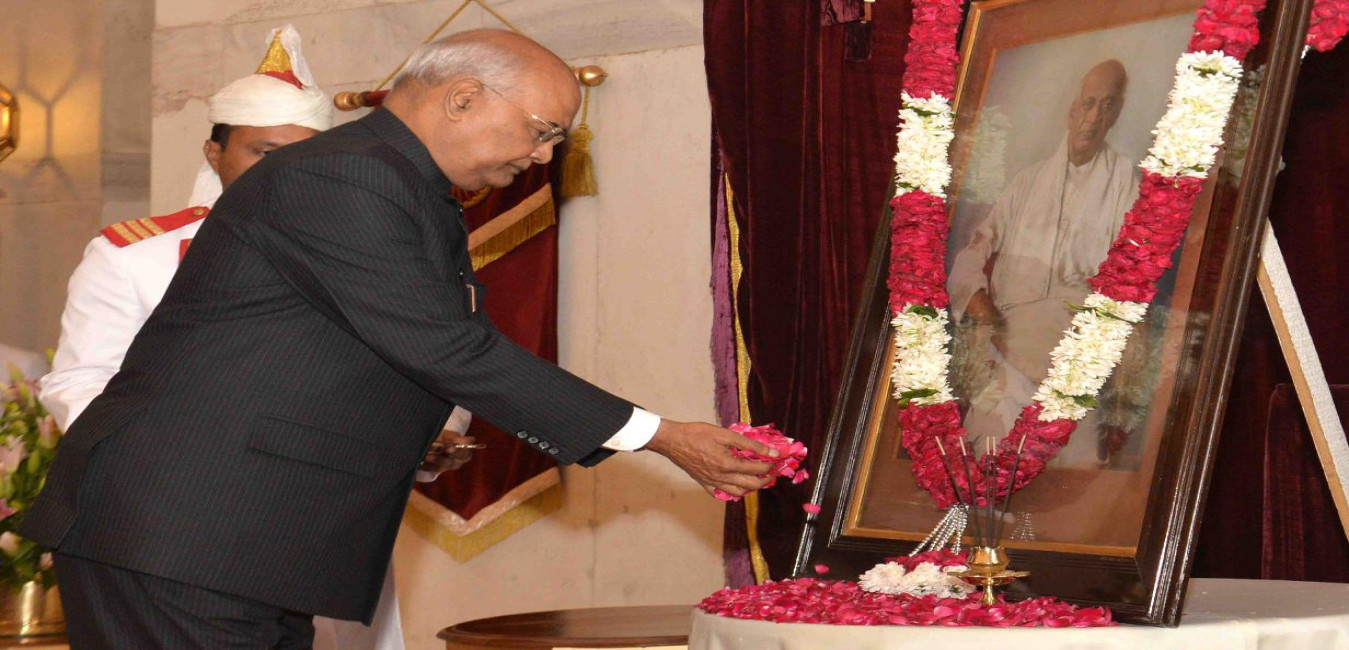 The President of India, Shri Ram Nath Kovind paying floral tributes to Sardar Vallabhbhai Patel, on his birth anniversary, at Rashtrapati Bhavan on October 31, 2018.