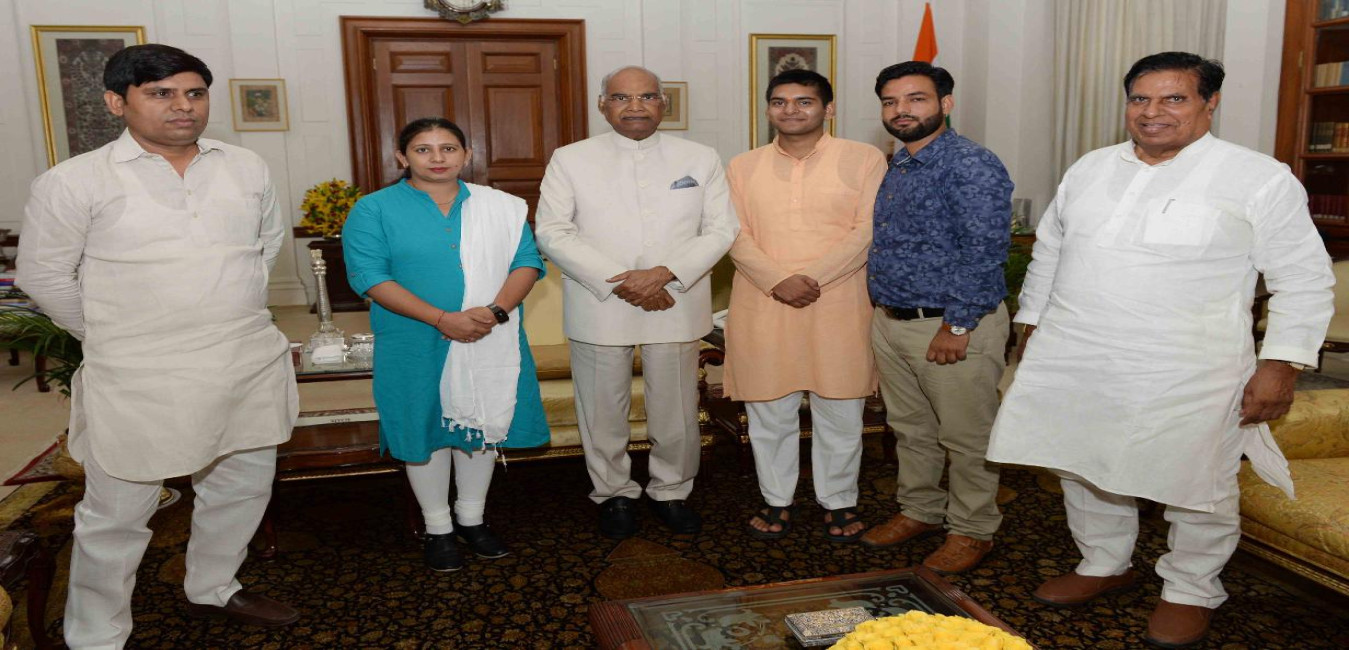Shri Moolchand Meena, Ex-MP (RS) with others meeting with the President of India, Shri Ram Nath Kovind, at Rashtrapati Bhavan on July 10, 2018.