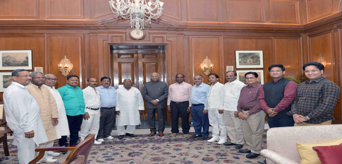 A delegation from BJP Scheduled Caste Morcha, led by Shri Vinod Sonkar, MP (LS) calling on the President of India, Shri Ram Nath Kovind, at Rashtrapati Bhavan on May 18, 2018.