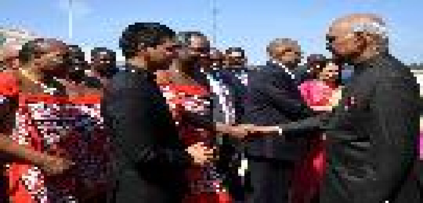 The President of India, Shri Ram Nath Kovind being received by the Prime Minister of Swaziland, H.E. Dr. Barnabas Sibusiso Dlamini and other dignitaries, on his arrival at King Mswati III International Airport, Shikhuphe, in Swaziland on April 09, 2018.