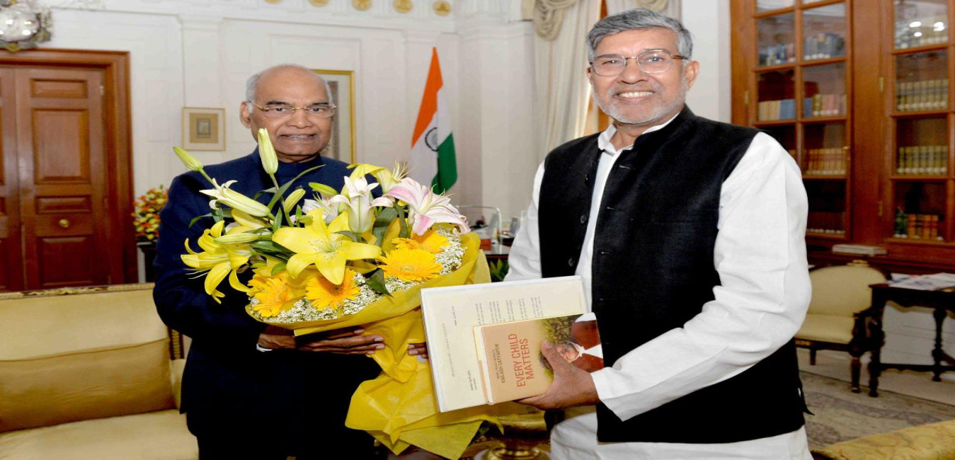 Shri Kailash Satyarthi, Nobel Laureate, Founder & Chairperson, Kailash Satyarthi Children's Foundation meeting with the President of India, Shri Ram Nath Kovind, at Rashtrapati Bhavan on March 20, 2018.