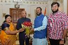 The Chief Minister of Tripura, Shri Biplab Kumar Deb along with the Deputy Chief Minister of Tripura, Shri Jishnu Debbarma calling on the President of India, Shri Ram Nath Kovind, at Rashtrapati Bhavan on March 19, 2018.