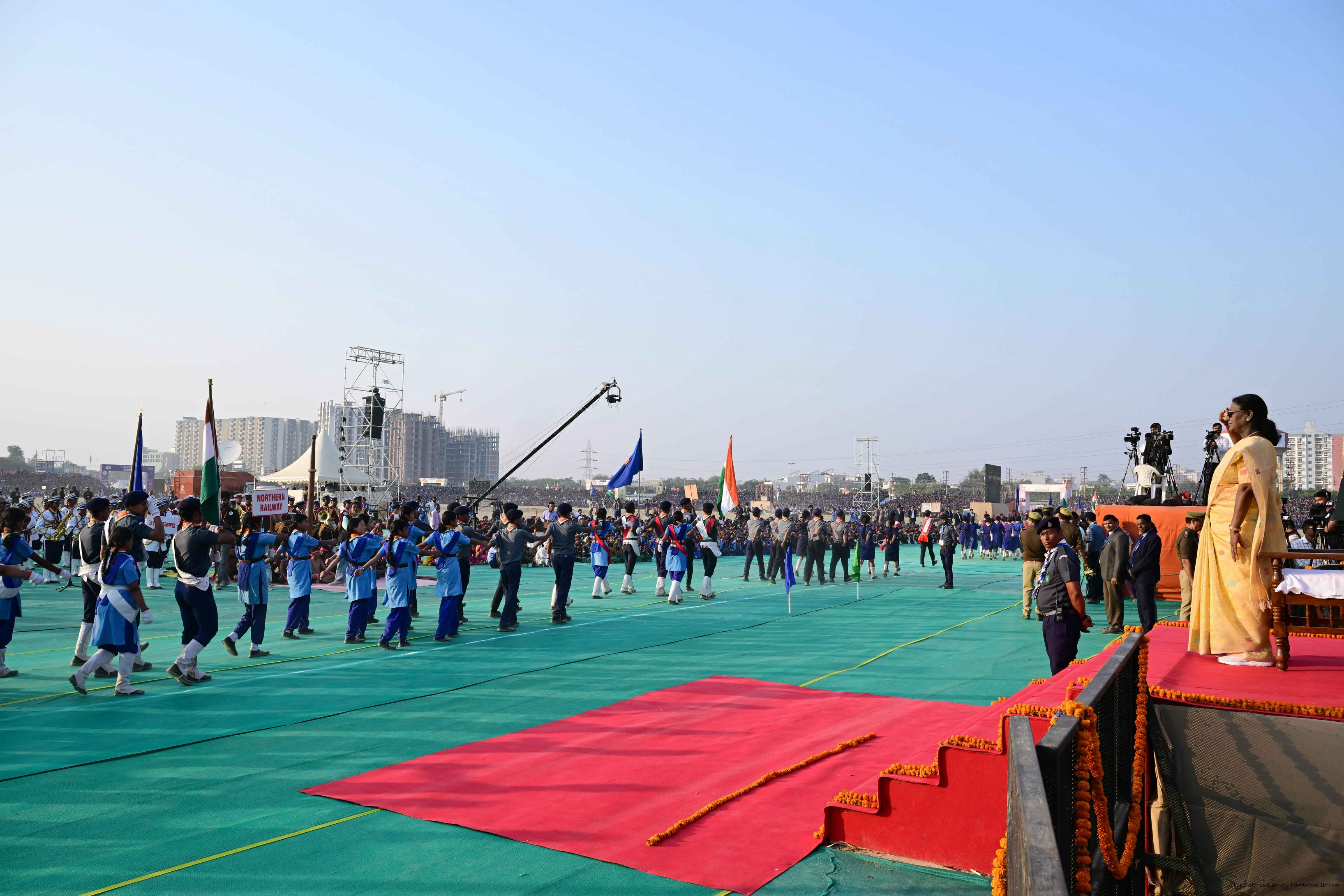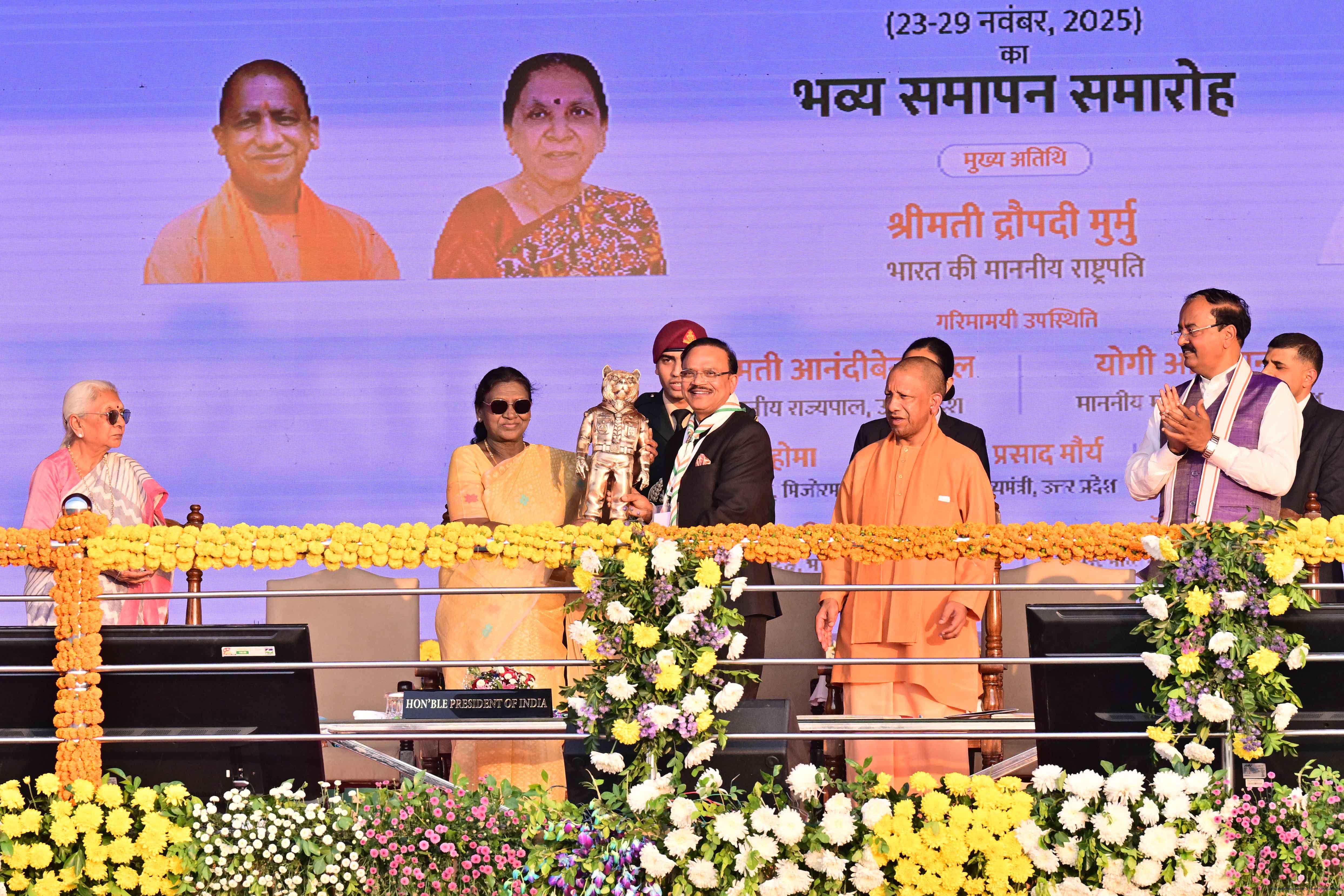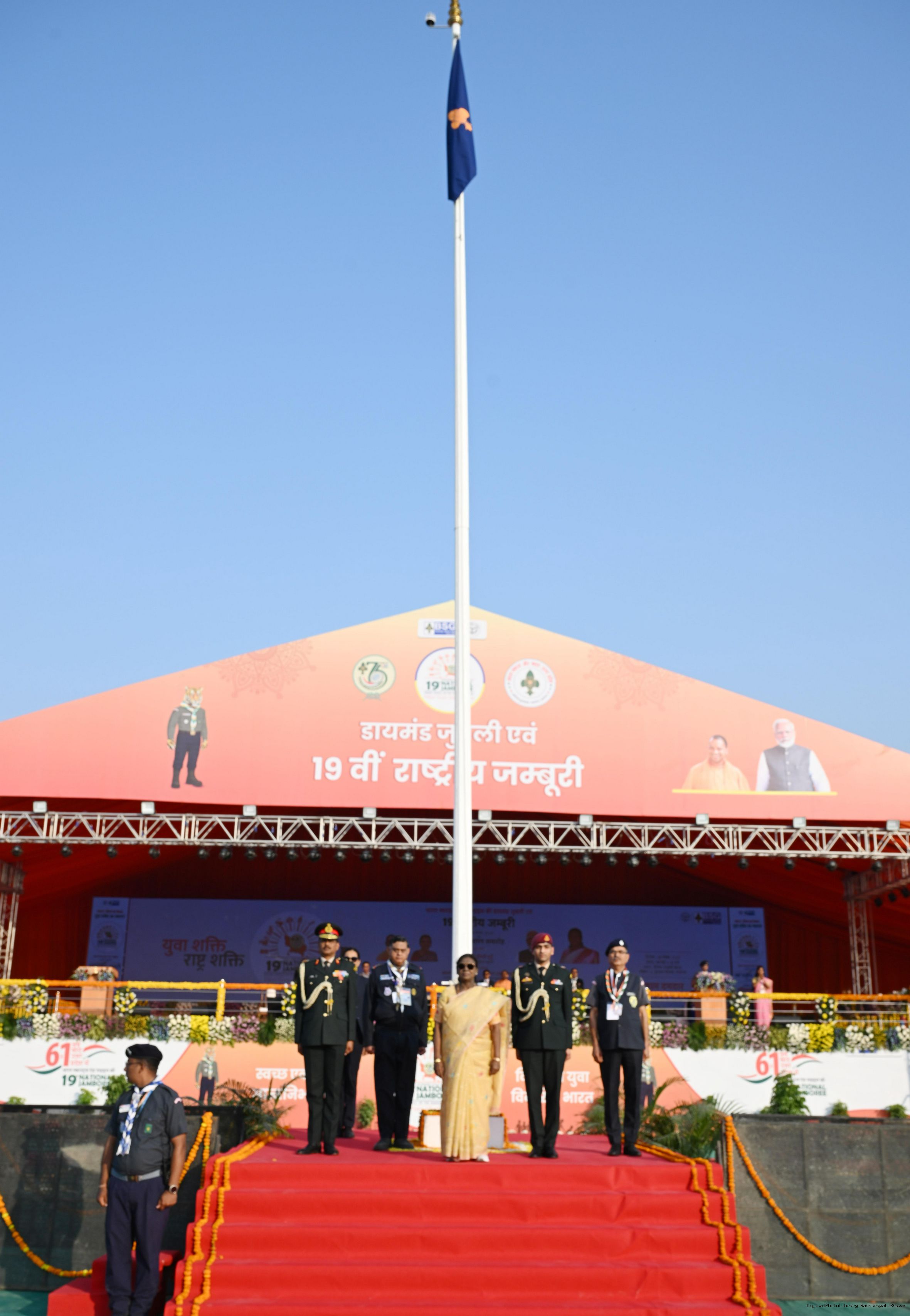 The President of India, Smt Droupadi Murmu, graced the closing ceremony of the Diamond Jubilee Celebrations of Bharat Scouts and Guides and addressed its 19th National Jamboree at Lucknow, Uttar Pradesh, on November 28, 2025.