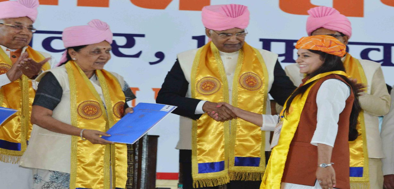 The President of India, Ram Nath Kovind addressing the Convocation of Jiwaji University and presenting Gold Medals to students, at Gwalior, in Madhya Pradesh on February 11, 2018.