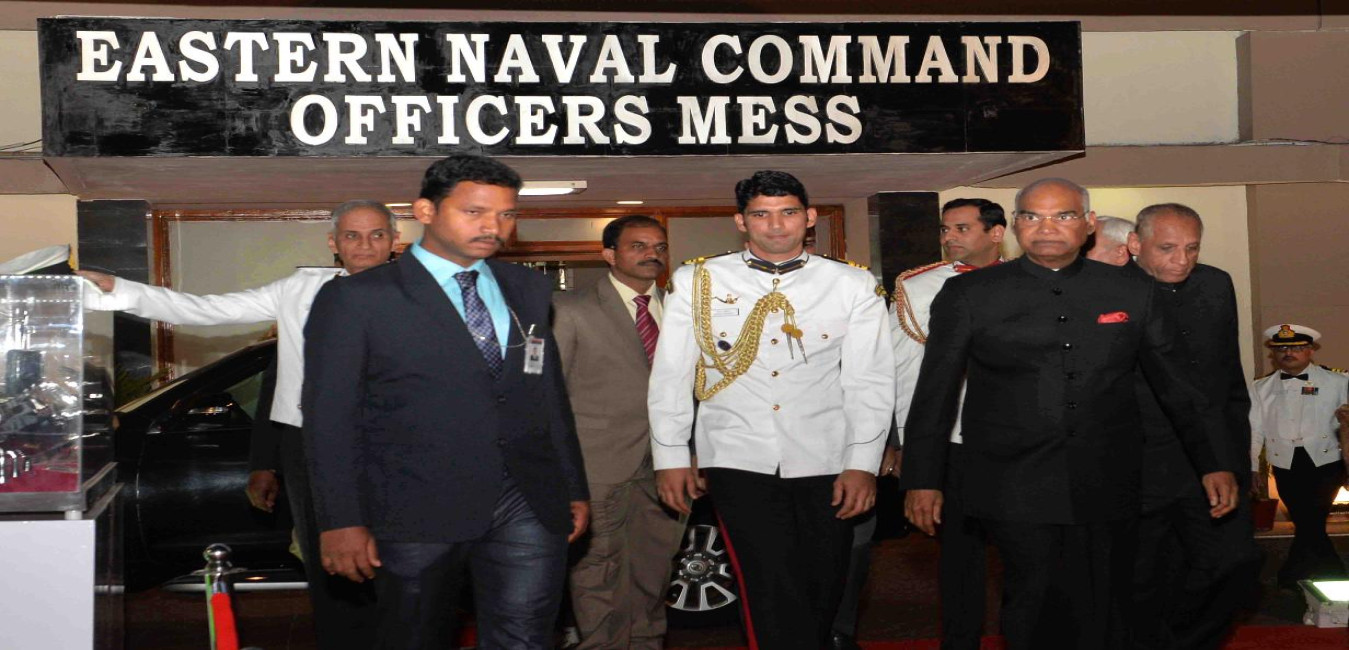 The President of India, Shri Ram Nath Kovind inspecting the Guard of Honour at the presentation of the colour to the Navy Submarine Arm of the Indian Navy, at Visakhapatnam, in Andhra Pradesh on December 08, 2017.