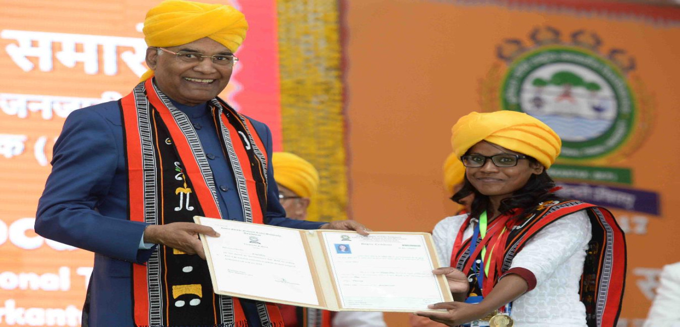 The President of India, Shri Ram Nath Kovind presenting degree certificates and gold medals to the students, at the 2nd convocation of Indira Gandhi National Tribal University (IGNTU), at Amarkantak, in Madhya Pradesh on November 11, 2017.