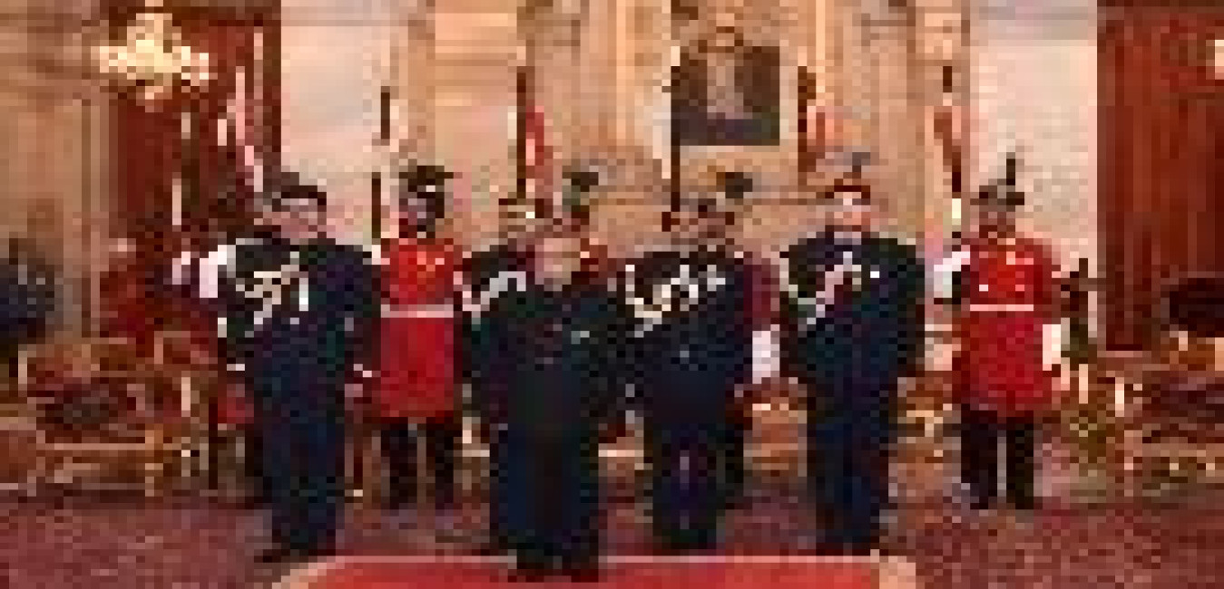 The President of India, Shri Pranab Mukherjee in a Group Photograph with the Military Band of 3 EME Centre, Bhopal, at Rashtrapati Bhavan on December 19, 2016.