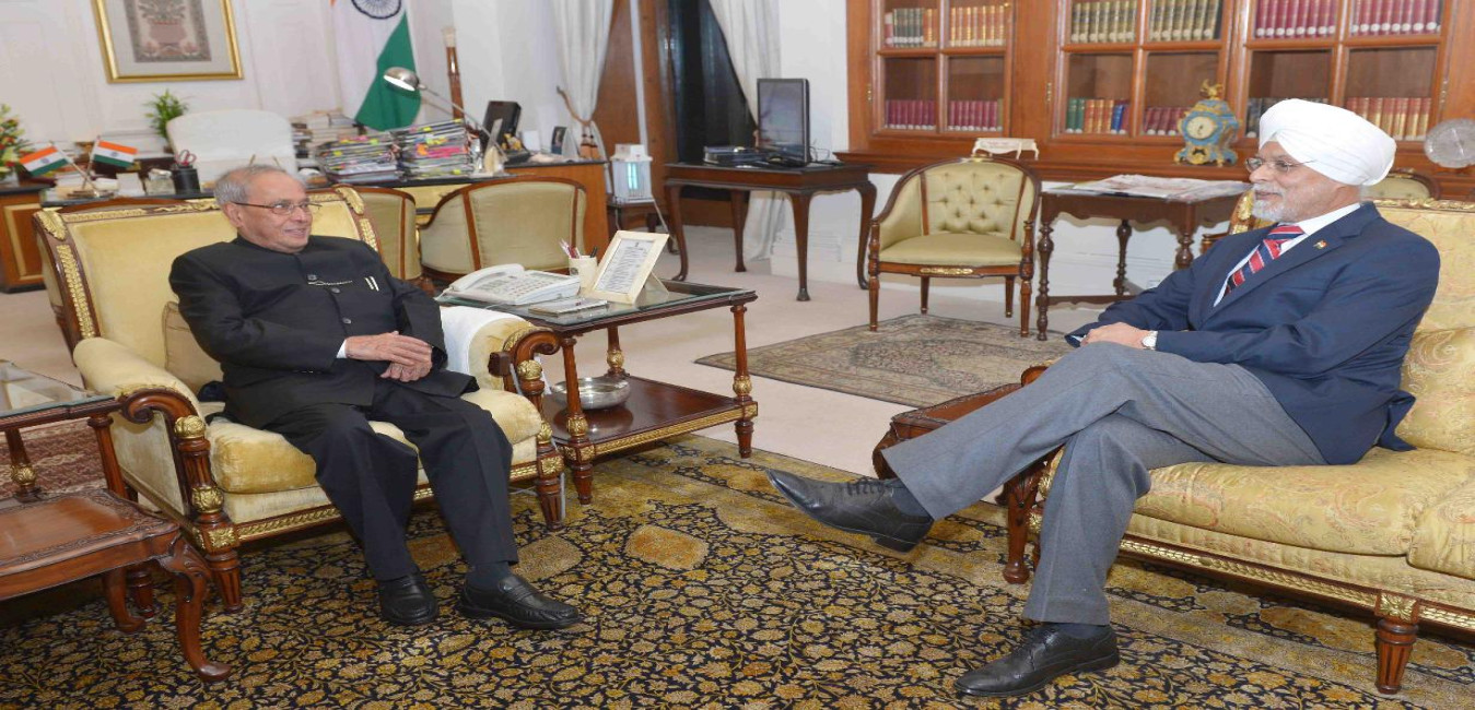 The President of India, Shri Pranab Mukherjee meeting with Shri Dineshwar Sharma, Director, IB, at Rashtrapati Bhavan on December 19, 2016.
