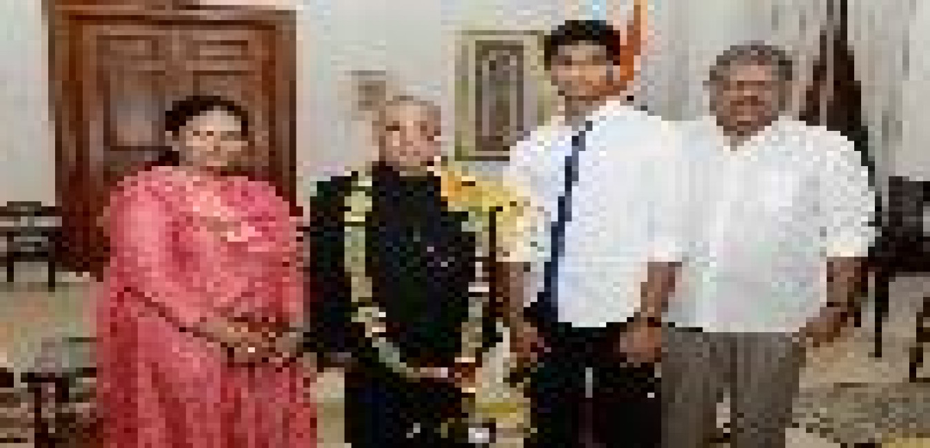 The President of India, Shri Pranab Mukherjee meeting with Shri Pradip Kumar Ghosh and Smt. Mala Ghosh from Kolkata, at Rashtrapati Bhavan on June 21, 2017.