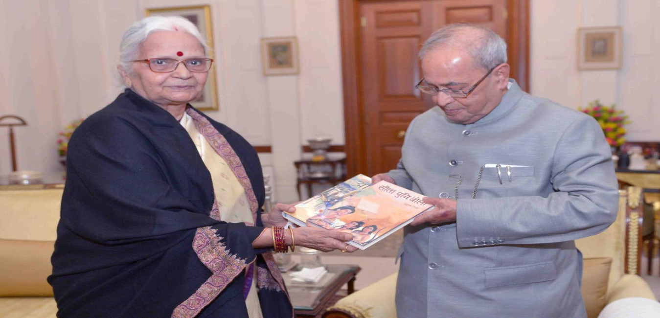 The President of India, Shri Pranab Mukherjee meeting with Smt. Anita Prabhu wife of Shri R. Prabhu, former Union Minister alongwith her son Shri Vikram Prabhu from Chennai, at Rashtrapati Bhavan on November 24, 2016.