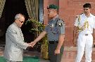 The President of India, Shri Pranab Mukherjee meeting with Shri Rajesh Khurana, Joint Commissioner of Police, Rashtrapati Bhavan Security, during a farewell call, at Rashtrapati Bhavan on November 23, 2016.